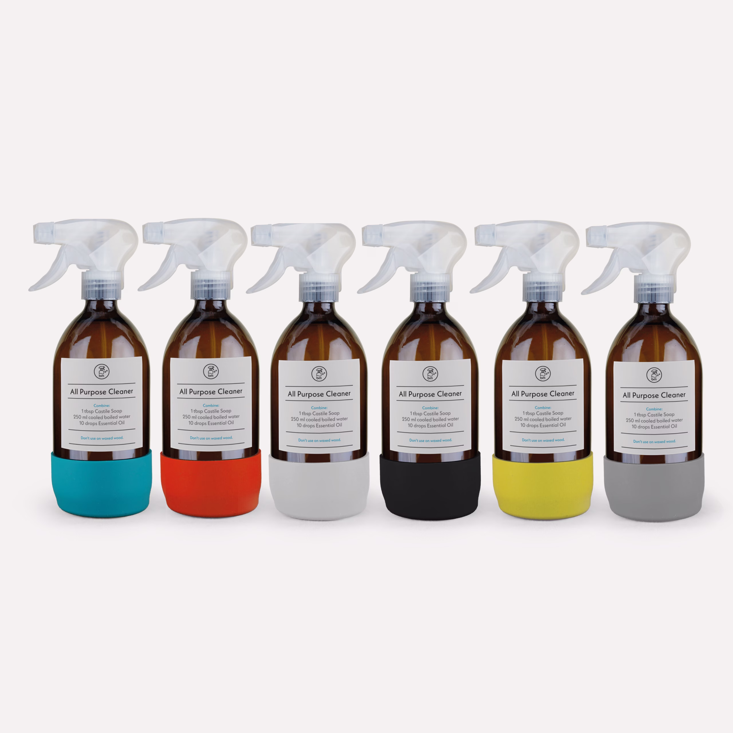 Pick the colour of your Silicone Bottle Boot to protect your Glass Trigger Spray Bottle in style. Our Waterproof Recipe Label makes DIY refills easy!Â